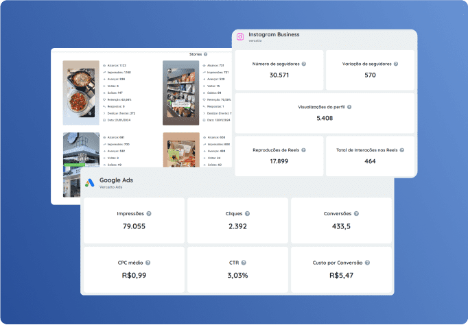 Dashboards intuitivos e personalizados que oferecem insights precisos sobre o desempenho de suas campanhas em tempo real. Essa ferramenta permite uma visão abrangente do seu investimento em marketing, destacando áreas de sucesso e oportunidades de otimização.